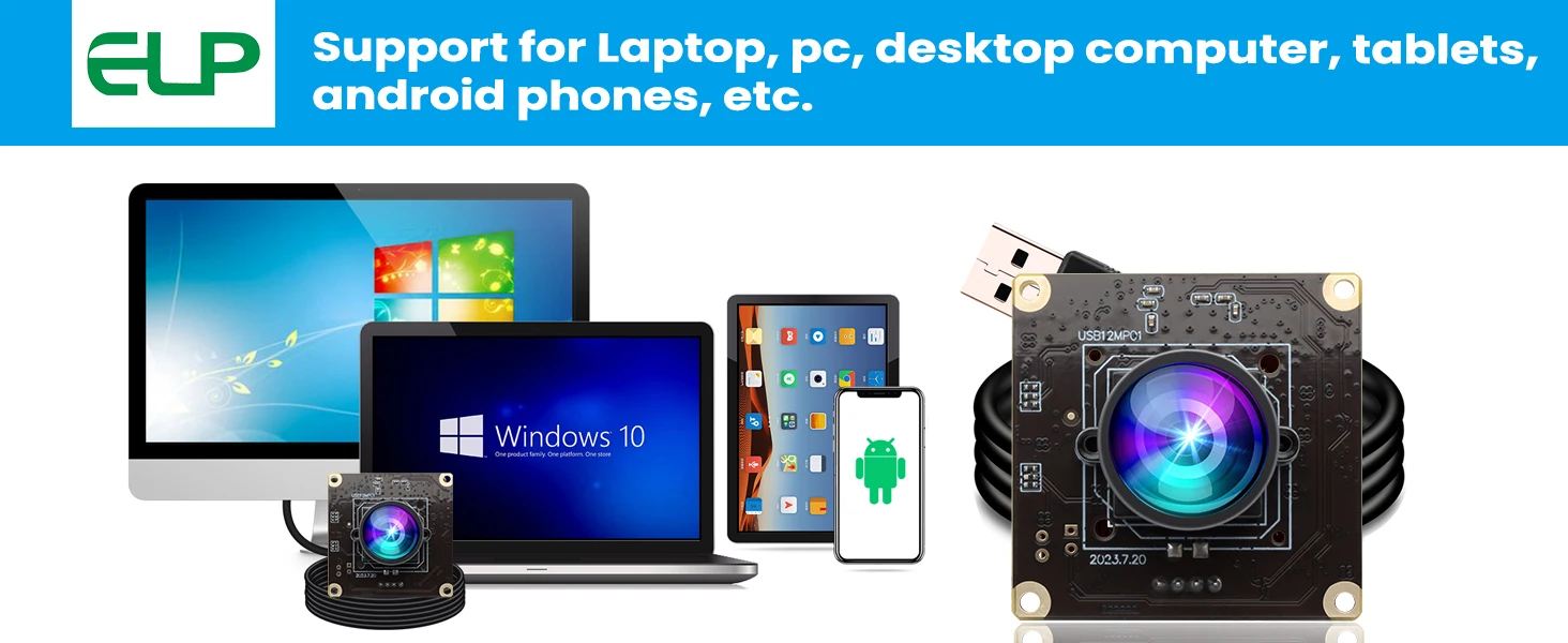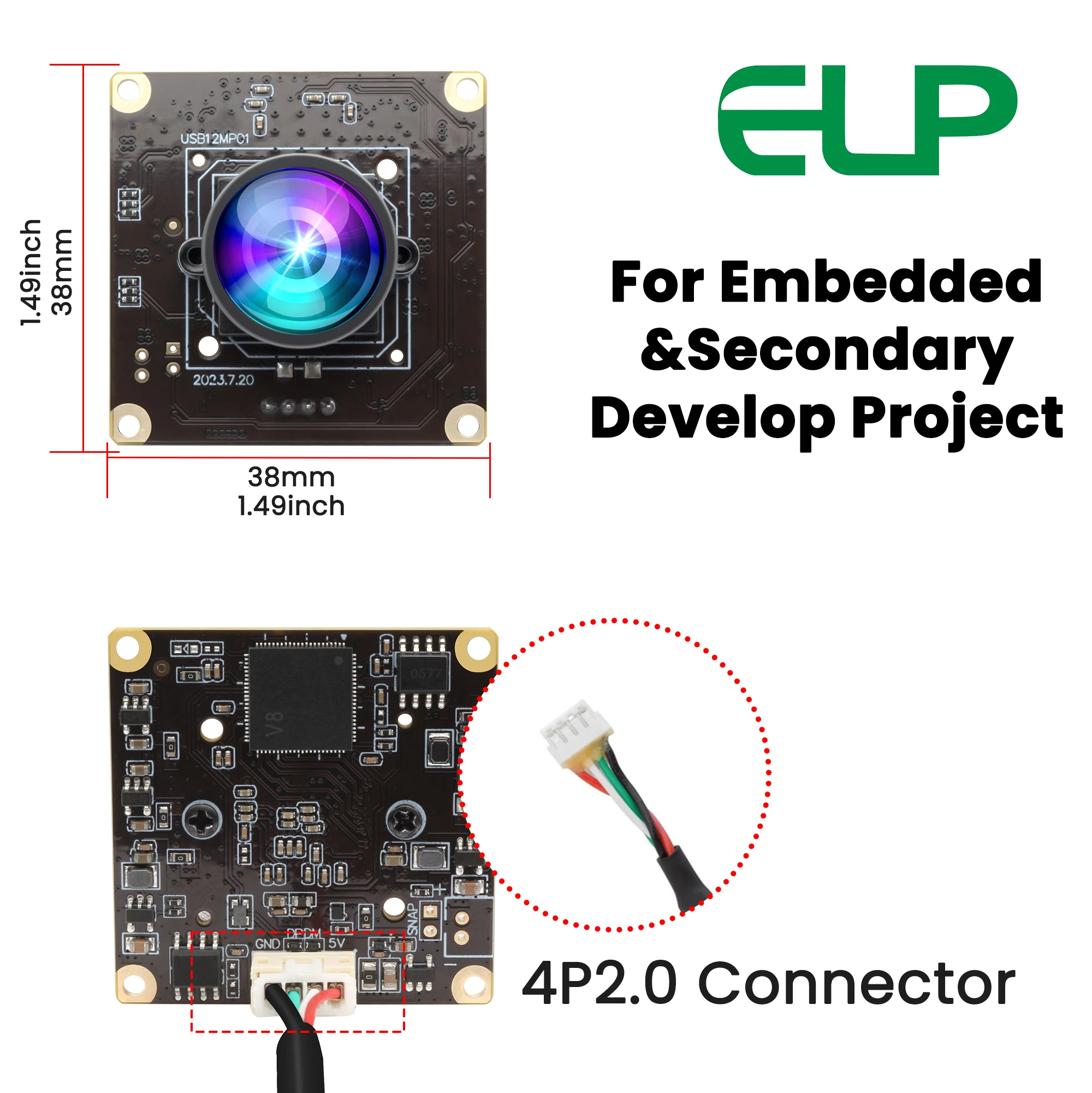 This 12MP USB 2.0 camera boasts a maximum resolution of 3840X3040 utilizing the advanced IMX 577 image sensor. Users can capture incredibly detailed images, real color reproduction, without interpolation. And its 0.1 Lux Low Illumination features makes it suitable for low light and weak light condition. Moreover, the camera’s frame rate can reach up to 120fps@1080P, 4K@30fps ensuring smooth and fluid video capture. With its high quality no distortion lens offering wide angle viewing for shooting. This camera captures stunningly accurate images. ELP’s latest 12MP USB High Speed camera stands out with its user-friendly plug-and-play functionality. Offering compatibility with Windows, Linux, Android, Mac OS, no additional drivers are needed, simplifying the setup process.