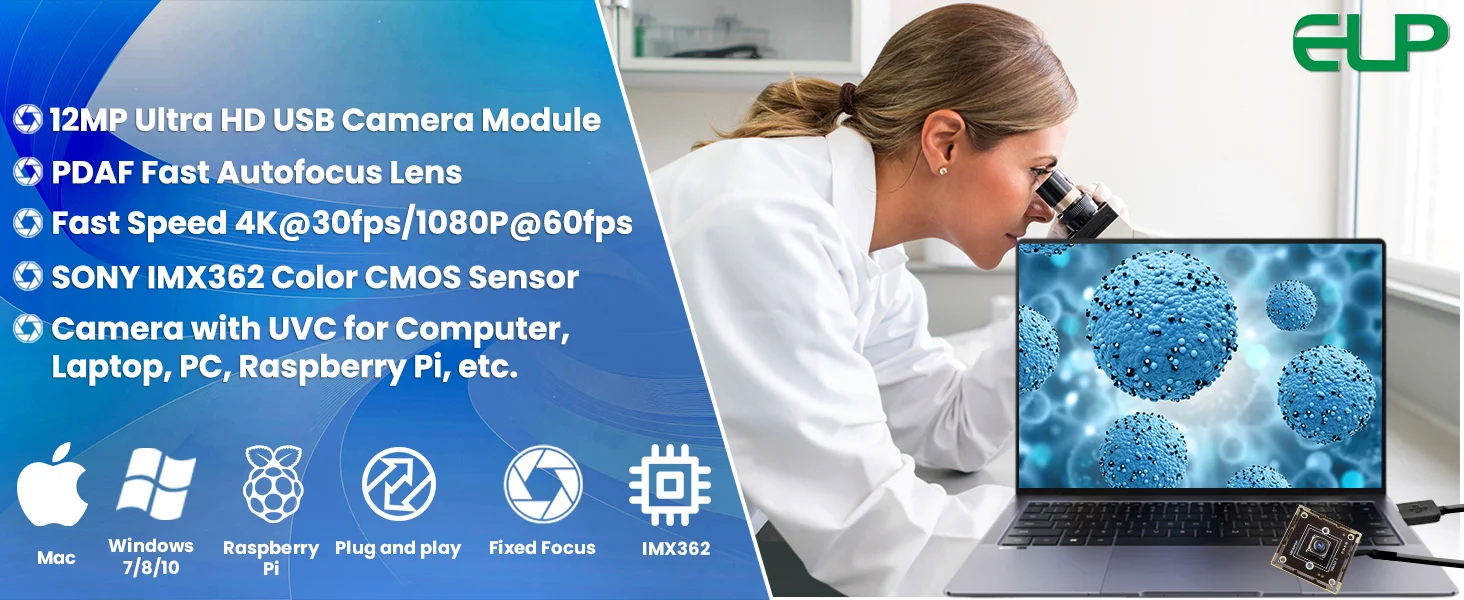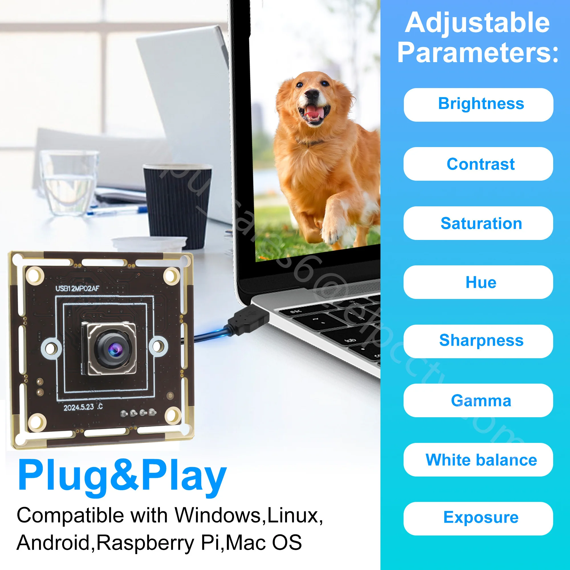 12MP High Definition USB Webcam- CMOS IMX362 Sensor Max Resolution up to 4000*3000 for Sharper and More Detailed Images
