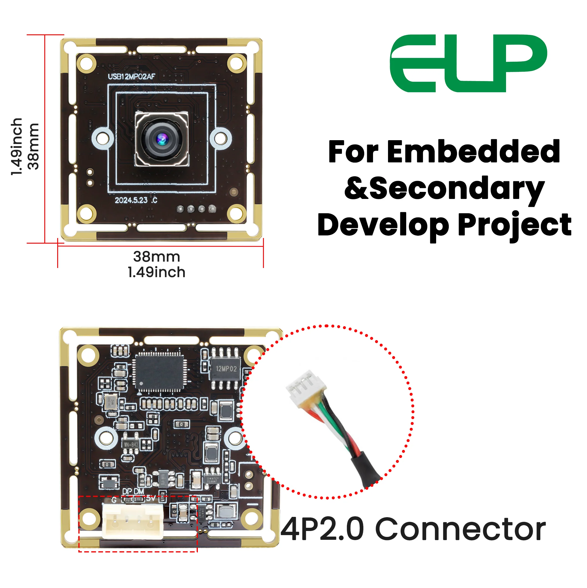 ELP 12MP Webcam Auto Focus USB Camera Module 1080P 60FPS 4K 30FPS Mini Lightburn Camera With 60degree Lens for Face Recognition