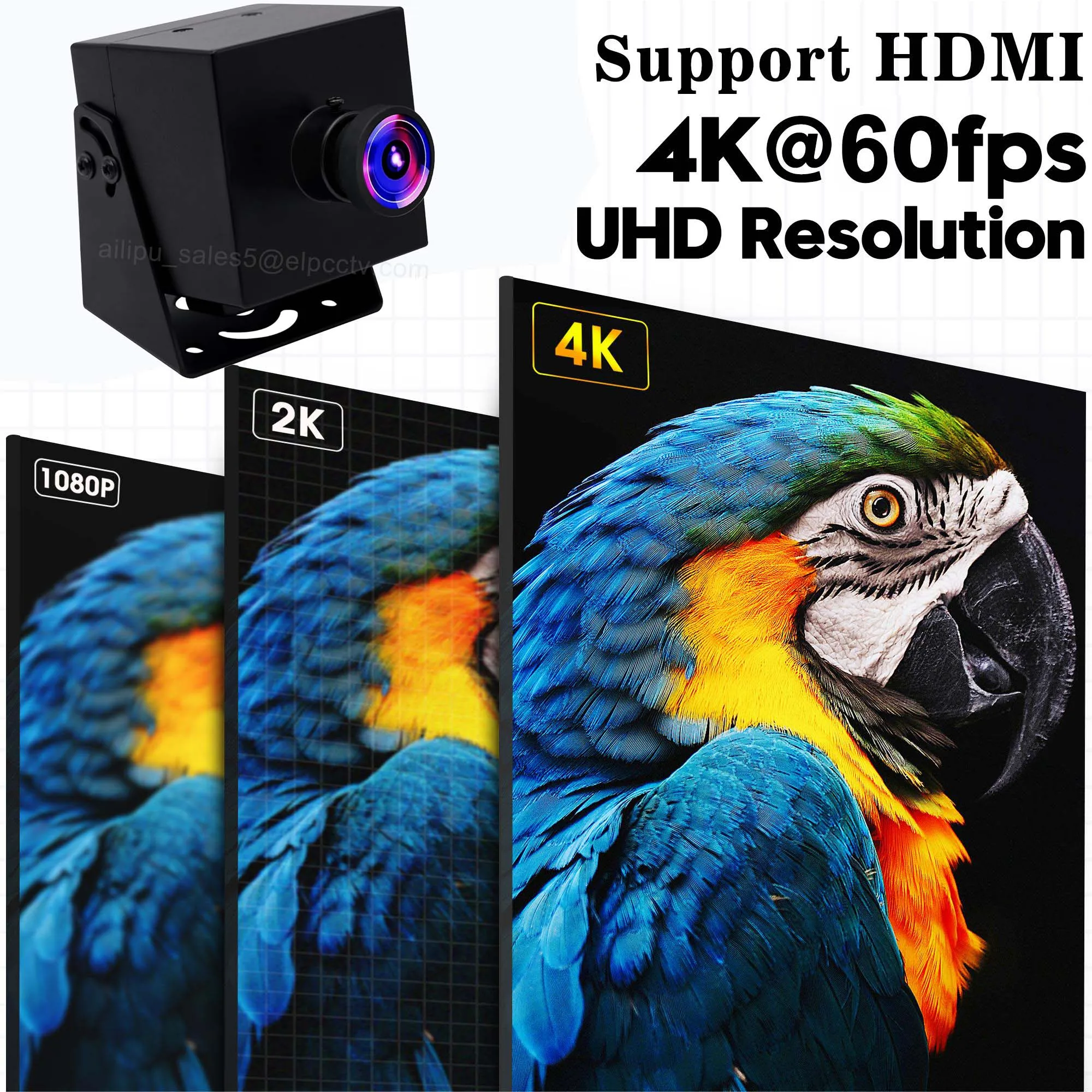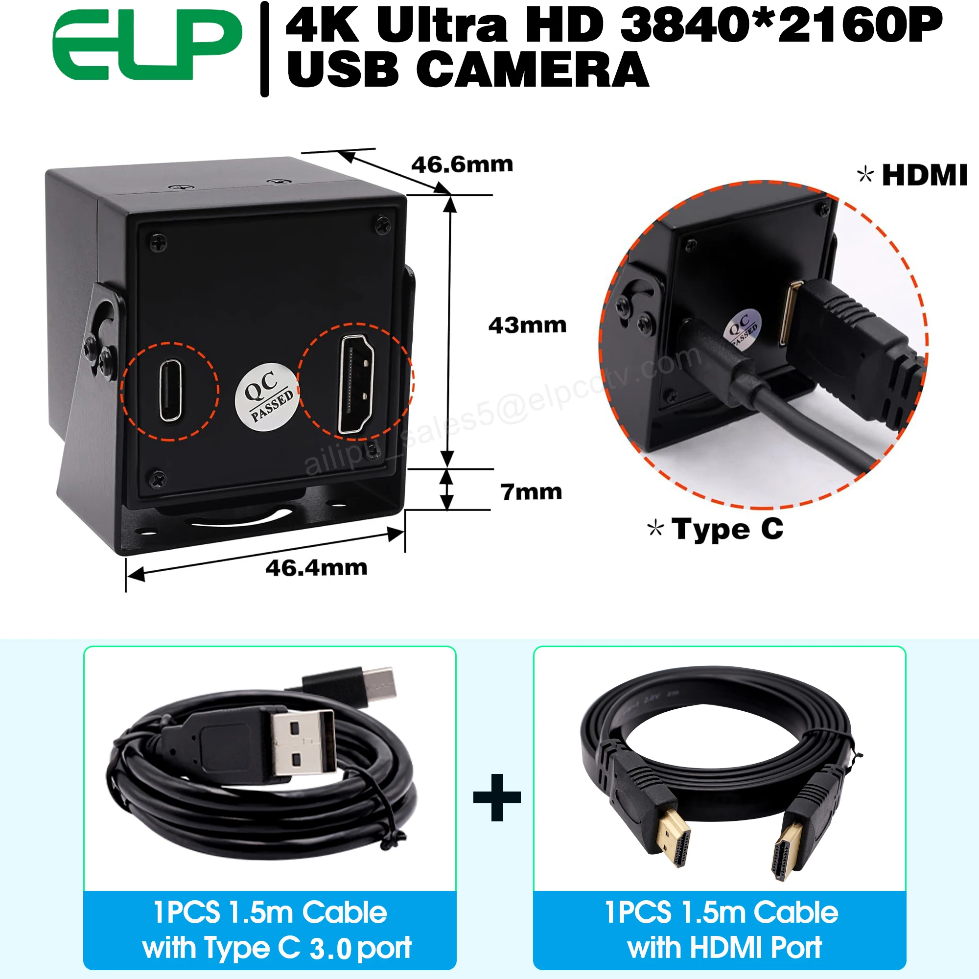 ELP 4K HDMI USB3.0 Camera 60FPS High Speed with Wide Angle 120Degree No Distortion Lens IMX415 UVC Mini 4K Webcam for PC Monitor