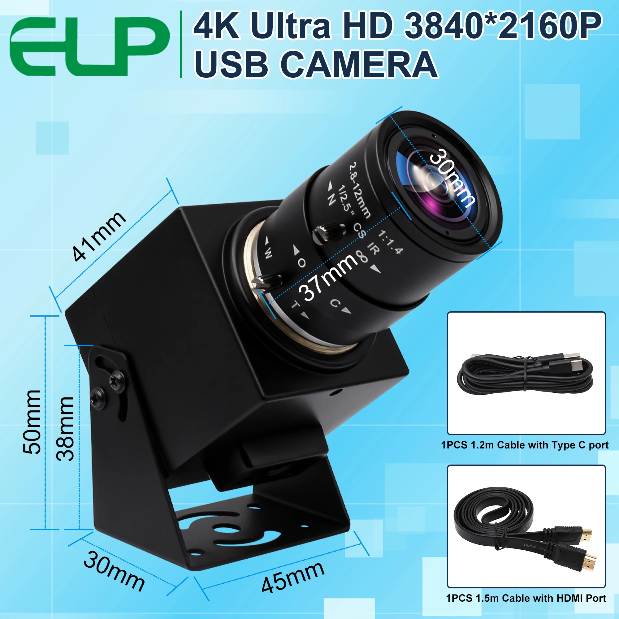 ELP-USB4KCAM01H-CFV(2.8-12) (4X zoom 2.8-12mm CS lens) ELP-USB4KCAM01H-CFV(3.6-10) (3X zoom 3.6-10mm CS lens) ELP-USB4KCAM01H-CFV(5-50Y) (10X zoom 5-50mm CS lens) |