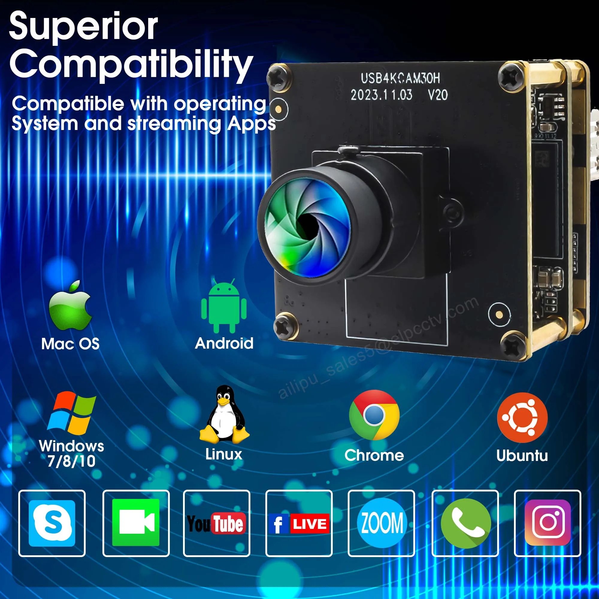 Max. 3840*2160 USB3.0 HDMI 4K Camera with high compatibility for Computer PC Laptop, Raspberry Pi, Android Develop Board, Jetson Nano. No driver needed, just plug and play.
